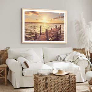 Affisch i ram av ljusek - Gyllene mildhetslandskap - 70x50 cm