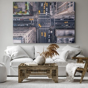 Duken är uppspänd i ramen. Sidor och kanter är täckta med tryck och skapar en fortsättning av bilden. Bilden är klar att hängas på väggen. Varje produkt har en ögla som är fastsatt i ramen samt en monteringssats (skruv + plugg).