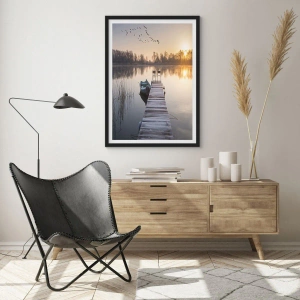 - Denna poster föreställer en pir över en lugn sjö vid soluppgången. De varma färgerna och det delikata landskapet skapar en atmosfär av avkoppling och harmoni. Perfekt för inredning inspirerad av naturen. Den svarta ramen förstärker bildens skärpa.