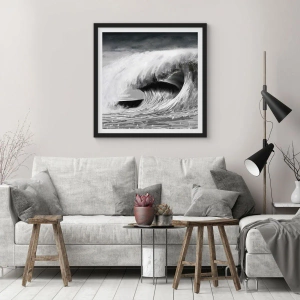 Affisch i svart ram - En kraftfull våg i grå nyanser - 50x70cm - Havets ilska - Modern väggdekoration för vardagsrum och sovrum ARTTOR