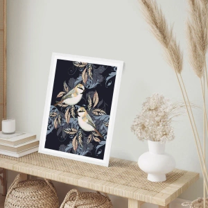 Affisch i vit ram - Gul-grå fågelsång - 50x70 cm