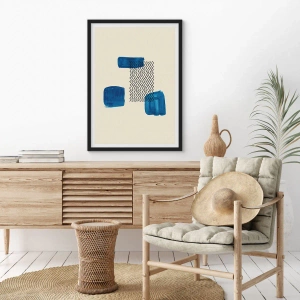 Postern utmärker sig genom sin enkelhet och elegans och betonar detaljernas skönhet. Kontrasten mellan den djupa marinblå färgen och den ljusa bakgrunden introducerar fräschör och lätthet i rummet, vilket ger det en distinkt karaktär.