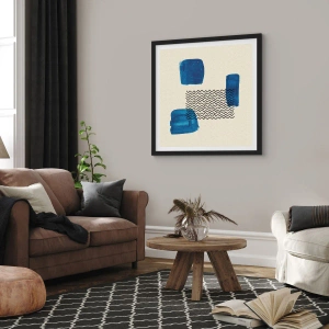 Affisch i svart ram - Abstrakt komposition i marinblå nyanser med linjer - 50x70cm - Abstrakt kvartett - Modern väggdekoration för vardagsrum och sovrum ARTTOR