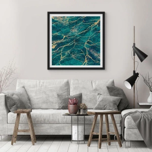 Affisch i svart ram - Abstrakta guldvener på en grön marmorbakgrund - 50x70cm - Guldåder - Modern väggdekoration för vardagsrum och sovrum ARTTOR