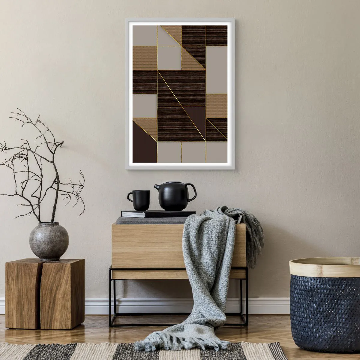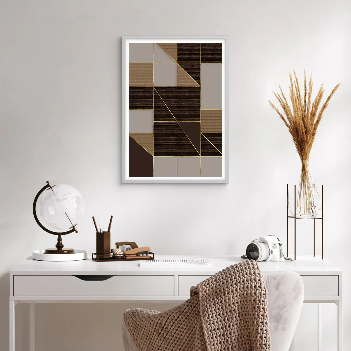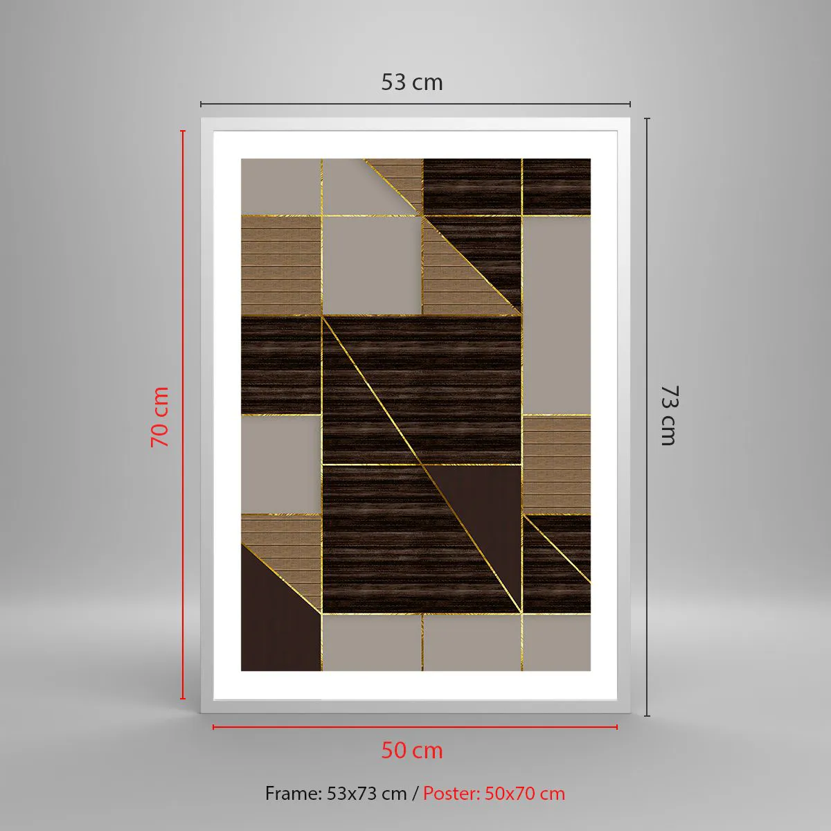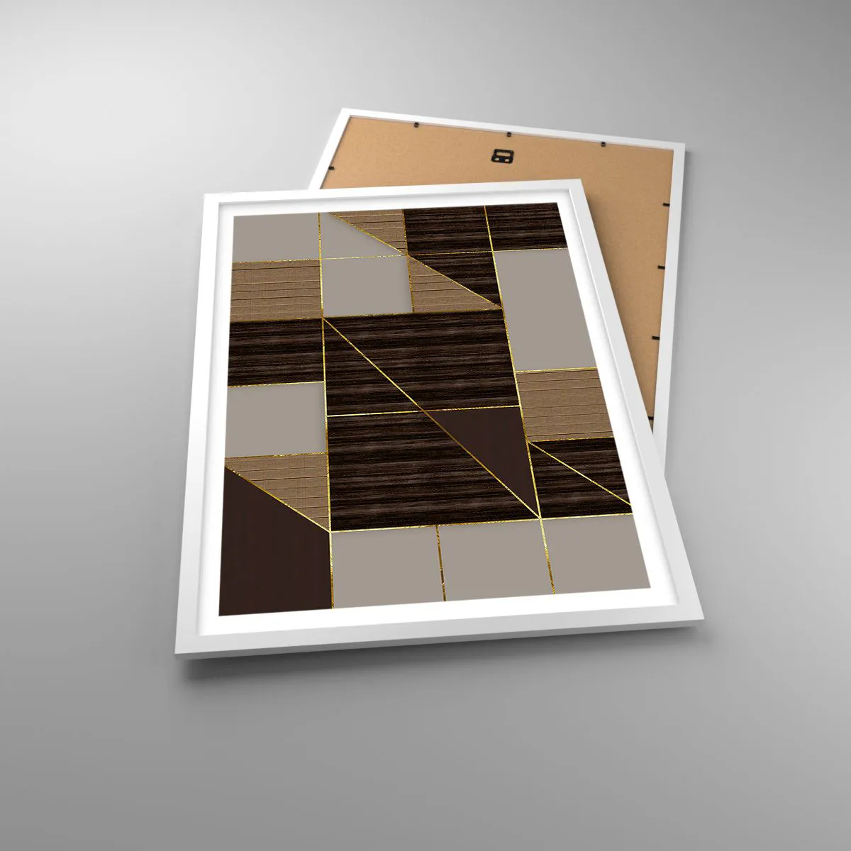 Affisch i vit ram - Mosaik av brun och guld - 50x70 cm
