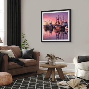 Affisch i svart ram - Fiskebåtar i hamnen vid solnedgången - 50x70cm - Inför nästa dag - Modern väggdekoration för vardagsrum och sovrum ARTTOR