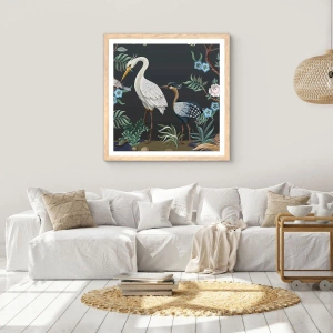 Affisch i ram av ljusek - Fågelparad - 30x30 cm
