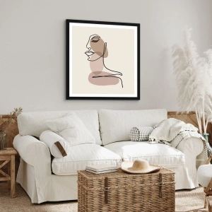 Affisch i svart ram - Ett minimalistiskt porträtt av en kvinna i abstrakta bruna toner - 50x70cm - Skönhetens säkra linje - Modern väggdekoration för vardagsrum och sovrum ARTTOR