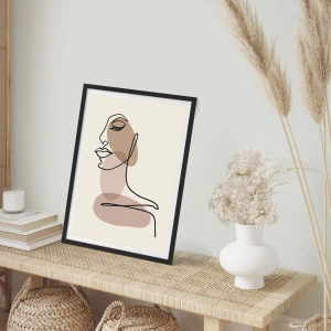 - En minimalistisk poster som föreställer ett porträtt av en kvinna i en rad, återgivet i delikata bruna toner. Den moderna kompositionen förstärker estetiken och elegansen i interiörer och inspirerar med sin enkelhet och harmoni.