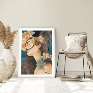 Affisch i vit ram - Sagan om drottning med liljor - 60x60 cm