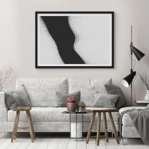 Affisch i svart ram - Minimalistisk vågform i svart och grått med en kornig effekt - 50x70cm - Flytande balans - Modern väggdekoration för vardagsrum och sovrum ARTTOR