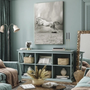 Detta konstverk passar perfekt i interiörer inredda i minimalistisk, modern eller klassisk stil och introducerar elegans och harmoni. Målningen "Mellan verklighet och dröm" är också en perfekt present till hästälskare och subtila, konstnärliga dekorationer.