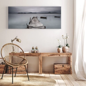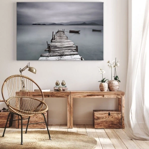 - Målningen "You Can Go Tomorrow" avbildar en träbrygga som leder till en lugn sjö i en grå, stämningsfull miljö. En subtil och harmonisk komposition, perfekt för interiörer fyllda av lugn och reflektion.