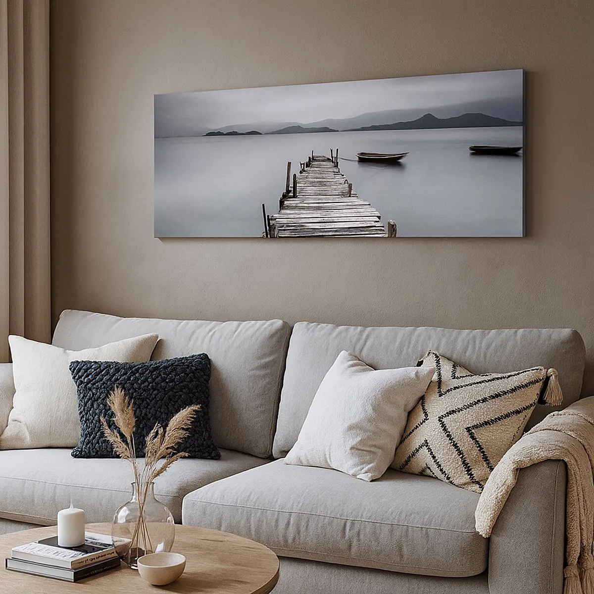 Duken är uppspänd i ramen. Sidor och kanter är täckta med tryck och skapar en fortsättning av bilden. Bilden är klar att hängas på väggen. Varje produkt har en ögla som är fastsatt i ramen samt en monteringssats (skruv + plugg).