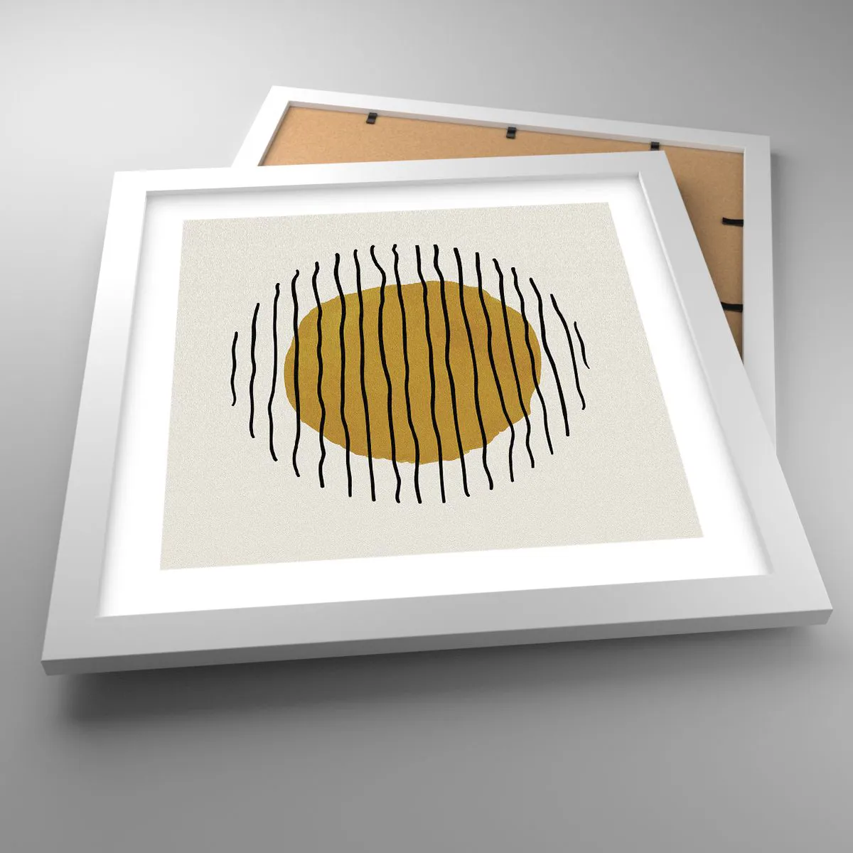 Affisch i vit ram - Abstraktion som darrar av glöd - 30x30 cm