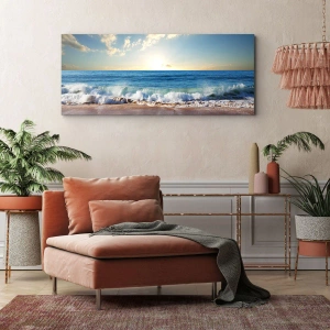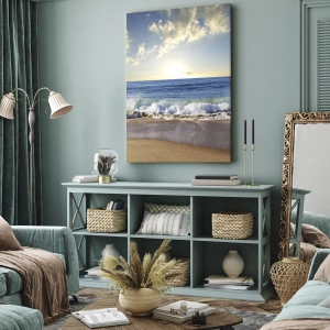 Canvastavla - Bild på duk - En solig strand med vågor som slår mot stranden - 70x50cm - Rörlighet och orörlighet samtidigt - Modern väggdekoration för vardagsrum och sovrum ARTTOR