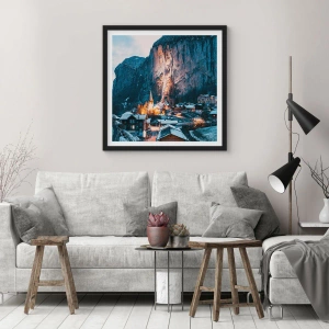 - Postern föreställer en pittoresk vinterby vid foten av en majestätisk klippa, upplyst av ett varmt ljussken. Perfekt för interiörer som vardagsrum, sovrum eller kontor. Den svarta ramen framhäver posterns elegans.