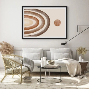 Affisch i svart ram - Abstrakt motiv av valv och sol i jordnära toner - 50x70cm - I den avlägsna galaxen - Modern väggdekoration för vardagsrum och sovrum ARTTOR