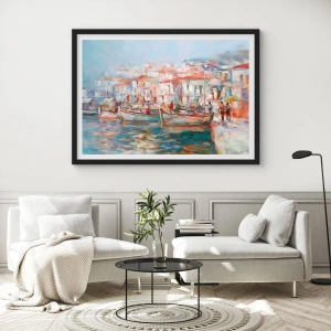 Affisch i svart ram - Pastellfärgad semester - 50x40 cm