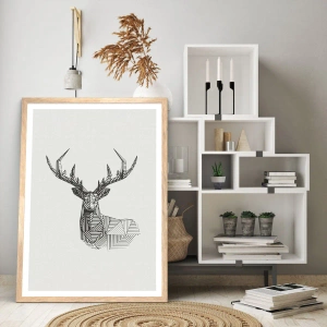 Affisch i ram av ljusek - Hjort i kubistisk stil - 40x40 cm