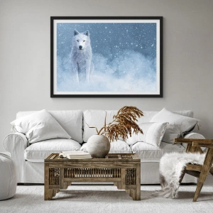 Affisch i svart ram - En vit varg i ett vinterlandskap, omgiven av snö. - 50x70cm - I vinter anda - Modern väggdekoration för vardagsrum och sovrum ARTTOR