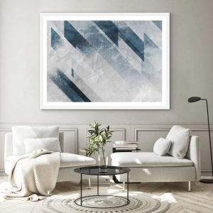 Affisch i vit ram - Tredimensionell komposition – gråhetens rörelse - 91x61 cm