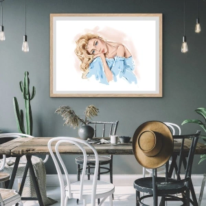 Affisch i ram av ljusek - Drömmande i blått - 100x70 cm