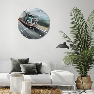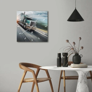Väggklocka - Klocka på glas - Amerikanska jätten i full fart - 40x40 cm