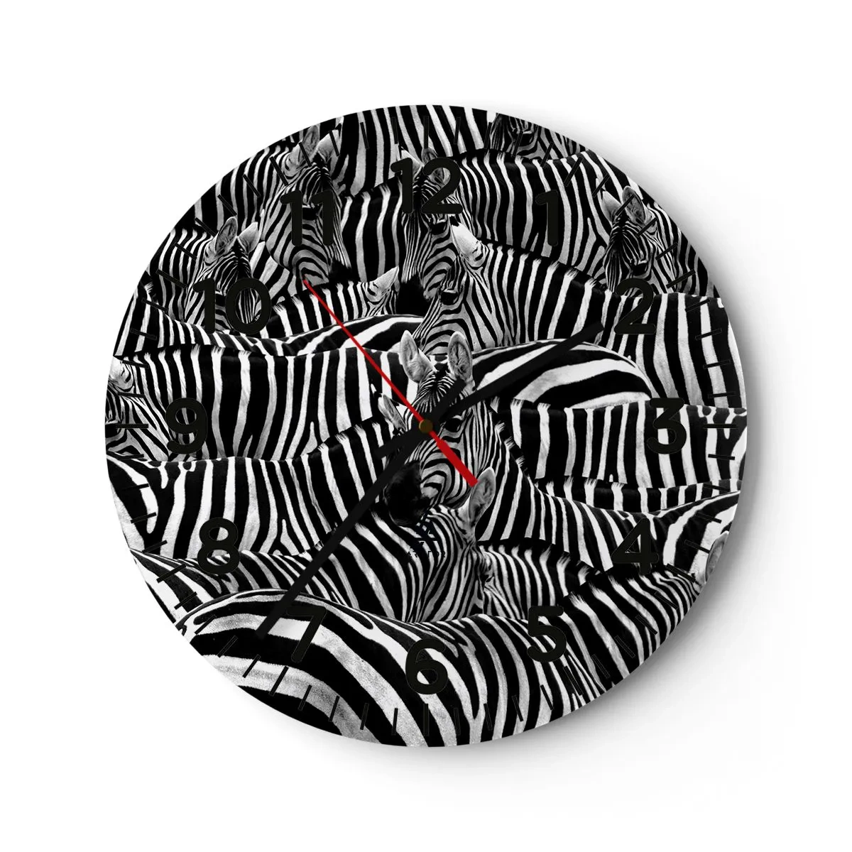 Väggklocka - Klocka på glas - Randig grupporträtt - 40x40 cm