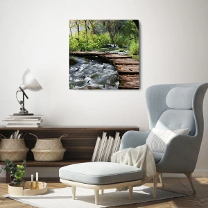 Väggklocka - Klocka på glas - Över skummande kaskad - 30x30 cm