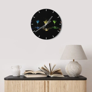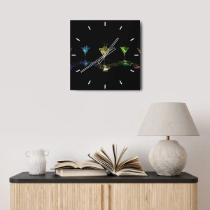 Väggklocka - Klocka på glas - Färgglada drycker i glas på svart bakgrund - 30x30cm - Glädjens färger i kristallglaset - Modern väggdekoration för vardagsrum, kök och sovrum ARTTOR
