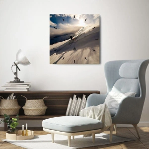Klockan är utförd med den nyaste utskriftstekniken som garanterar bibehållande av naturliga färger och en hög färgmättnad. Tillverkning av klockor på glas sker i flera etapper. Den högkvalitativa utskriften och de två skyddsskikten genomgår en process för termisk sammanfogning med glaset. För detta använder vi en innovativ teknik som omfattar ugnar för glaslaminering i vakuummiljö.