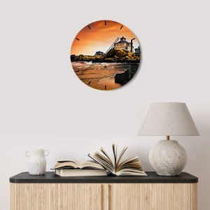 Den färdiga väggklockan *"Hus på en klippig kust vid solnedgången"* kombinerar funktionalitet och estetik. Dess unika motiv ger värme och harmoni till interiören och blir mittpunkten i alla arrangemang.