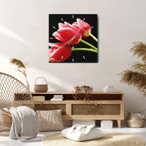 Klockan är tillverkad av glas med 4mm tjocklek. Klockans utförandeteknik överensstämmer med säkerhetsklassen 2B2 enligt standarden PN-EN 12600:2004 vilket garanterar slagtålighet. Klocka på glas är klar för upphängning - är försedd med metallögla fastsatt på klockans baksida samt en distans av skum som justerar avståndet mellan klockan och väggen. Klockan har en tyst steglös mekanism som strömförsörjs med 1,5V AA batteri (batteriet ingår inte).