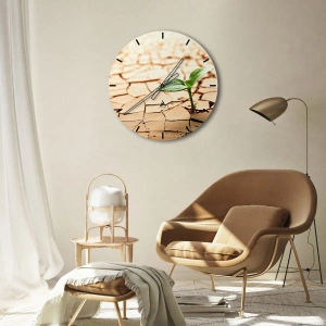 Väggklocka - Klocka på glas - Ett grönt skott som växer upp ur torr jord - 30x30cm - Obesegrad livskraft - Modern väggdekoration för vardagsrum, kök och sovrum ARTTOR