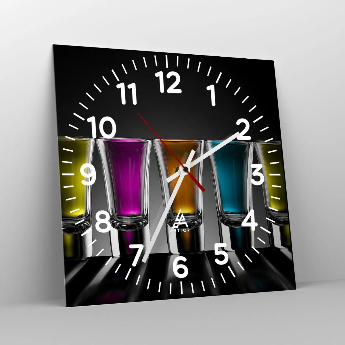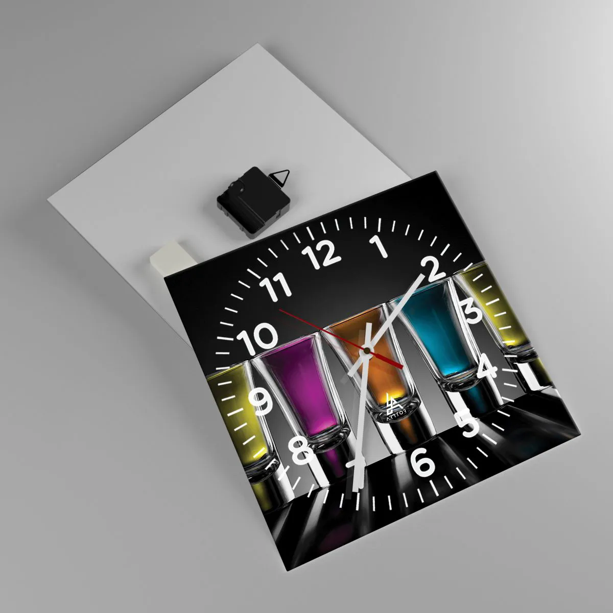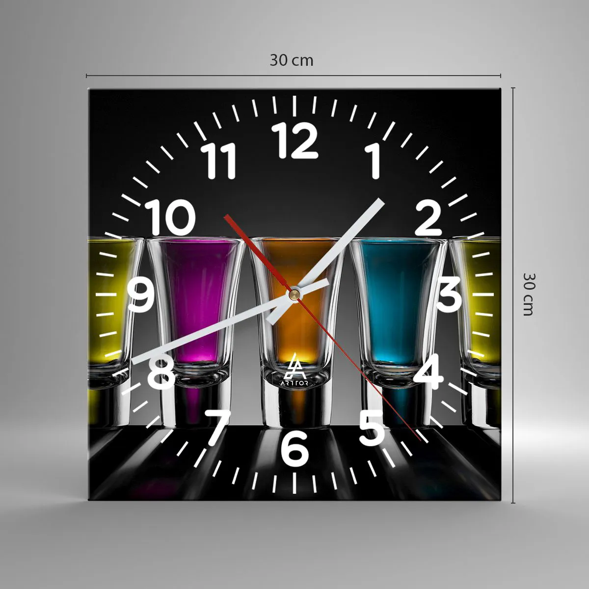 Klockan är utförd med den nyaste utskriftstekniken som garanterar bibehållande av naturliga färger och en hög färgmättnad. Tillverkning av klockor på glas sker i flera etapper. Den högkvalitativa utskriften och de två skyddsskikten genomgår en process för termisk sammanfogning med glaset. För detta använder vi en innovativ teknik som omfattar ugnar för glaslaminering i vakuummiljö.