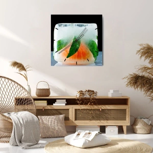 Väggklocka - Klocka på glas - En isbit med myntablad och en skiva grapefrukt inuti - 30x30cm - Fräschhet och svalka - Modern väggdekoration för vardagsrum, kök och sovrum ARTTOR