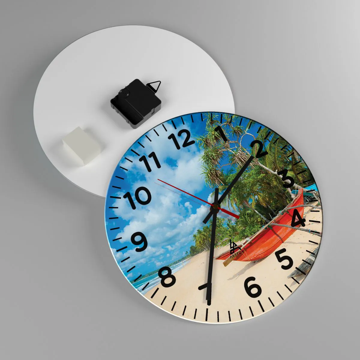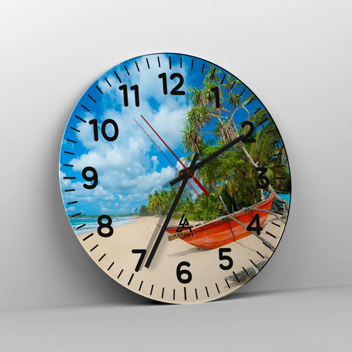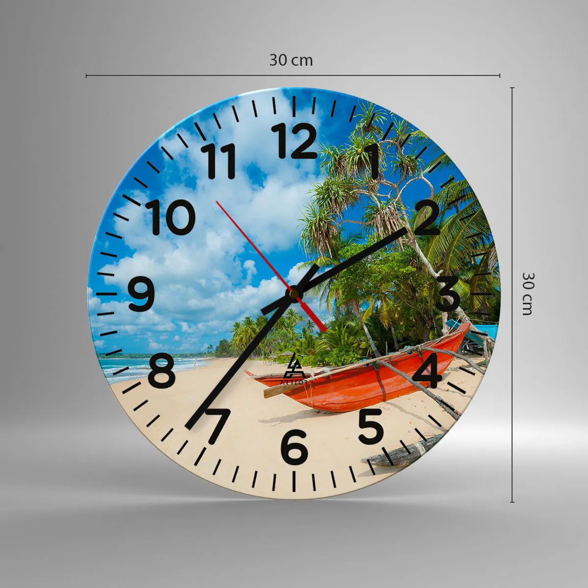 Klockan är gjord av slitstarkt 4 mm tjockt glas. Glas behåller tryckets naturliga färger