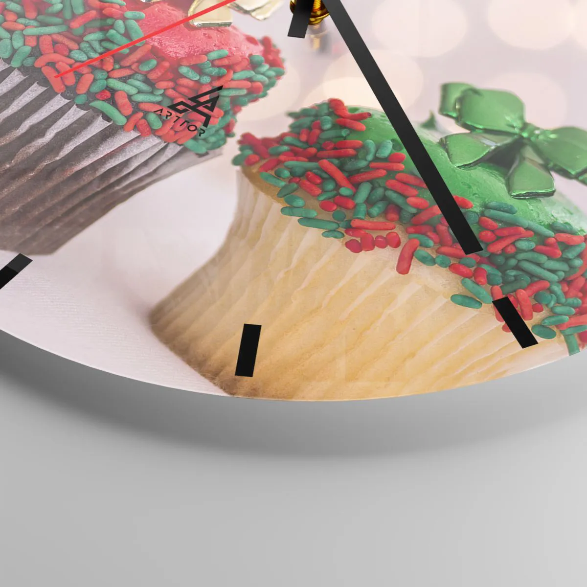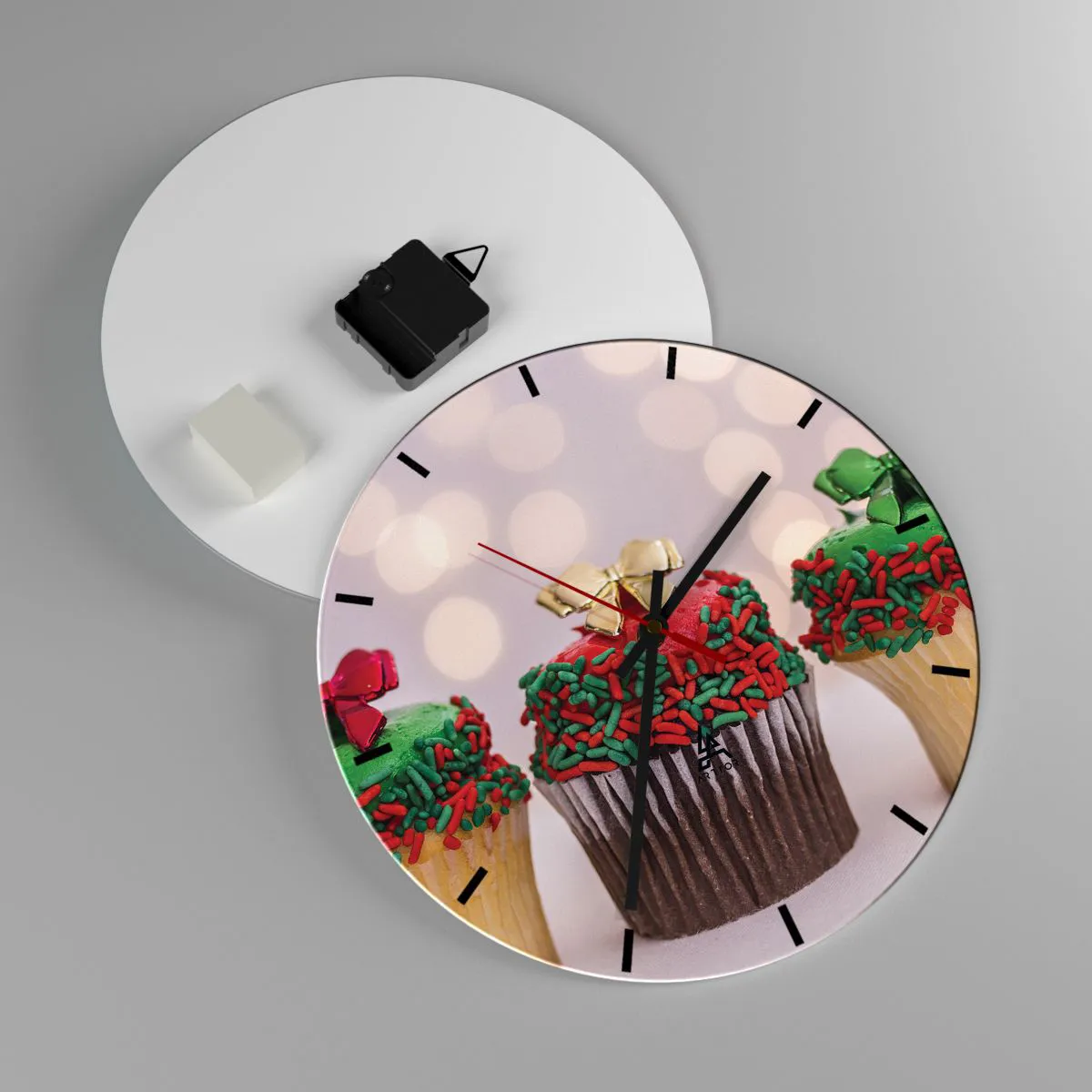 Väggklocka - Klocka på glas - Julmuffins med färgglada strössel och rosetter - 30x30cm - Läckert - Modern väggdekoration för vardagsrum, kök och sovrum ARTTOR