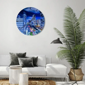 Väggklocka - Klocka på glas - Stadens nattrytmer - 30x30 cm