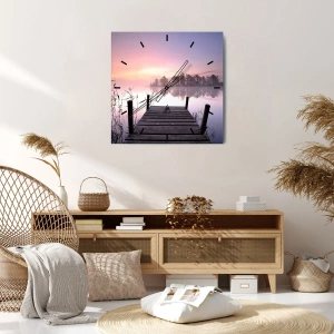Väggklocka - Klocka på glas - Ur liljedimman... - 40x40 cm