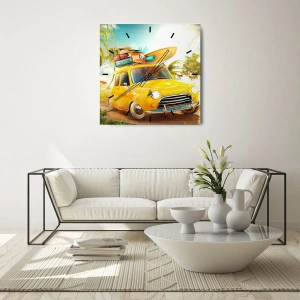 Väggklocka - Klocka på glas - Resa för flera leenden - 30x30 cm