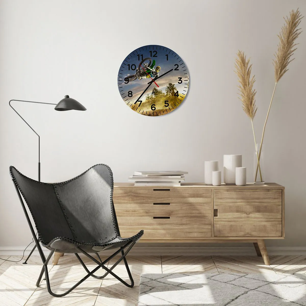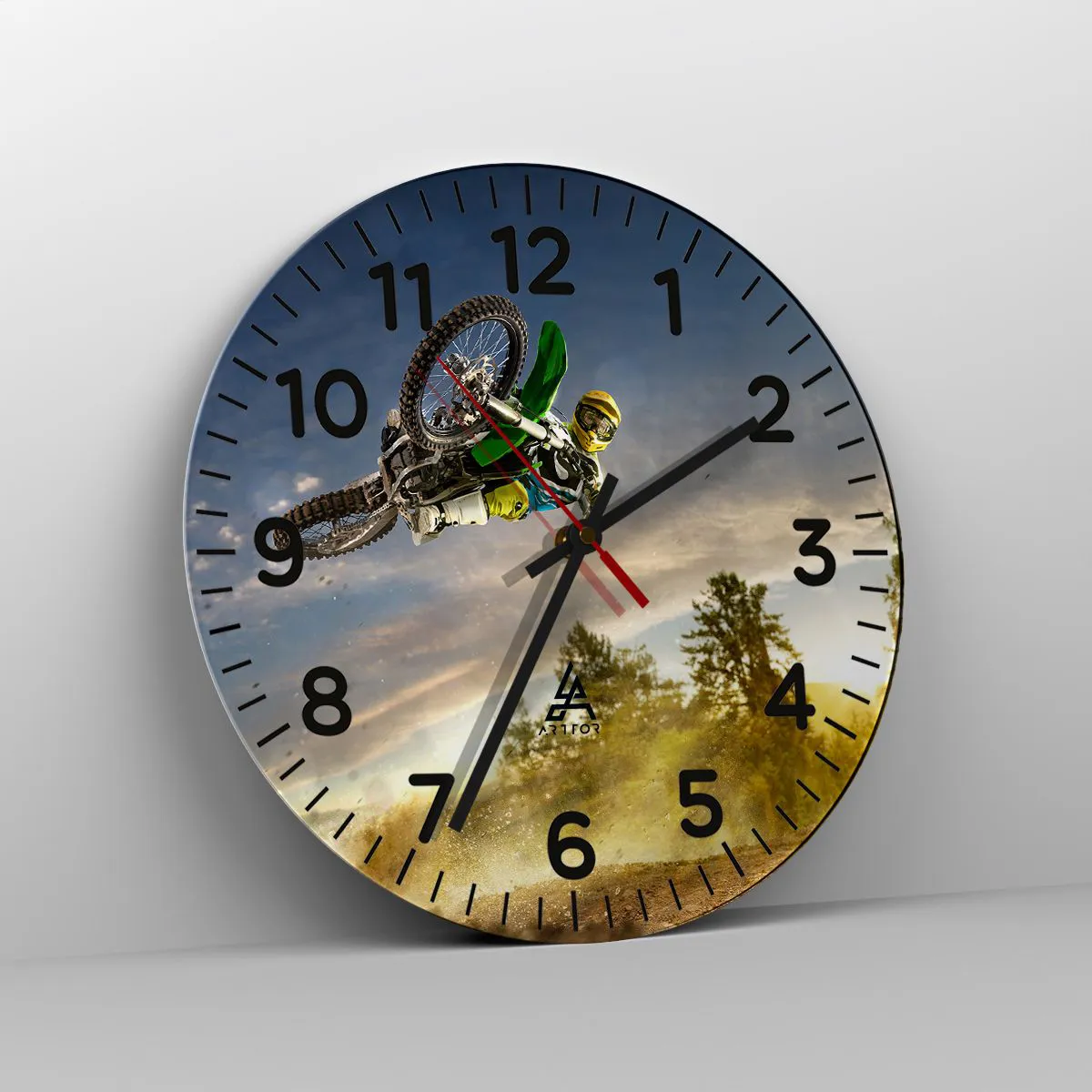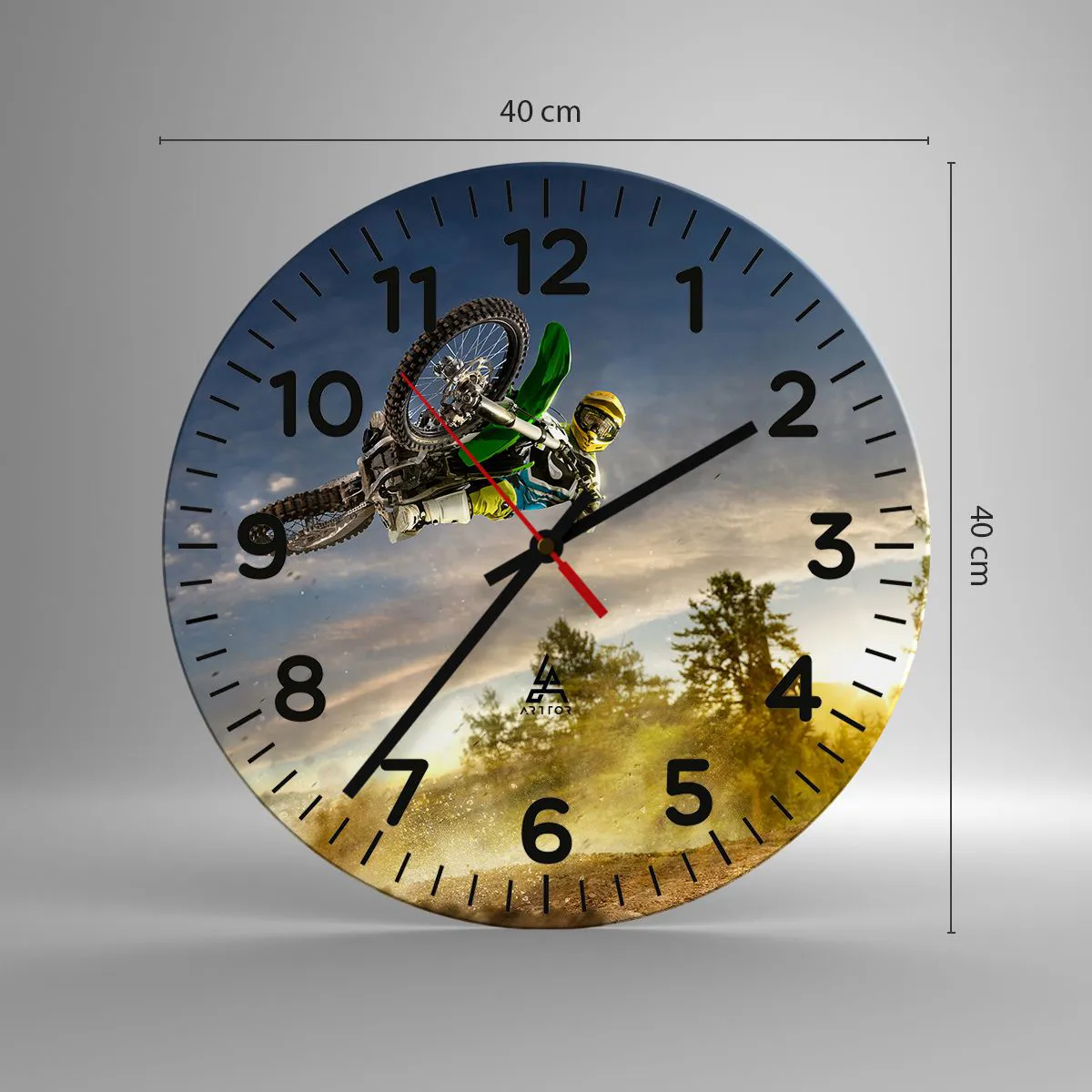 Klockan är utförd med den nyaste utskriftstekniken som garanterar bibehållande av naturliga färger och en hög färgmättnad. Tillverkning av klockor på glas sker i flera etapper. Den högkvalitativa utskriften och de två skyddsskikten genomgår en process för termisk sammanfogning med glaset. För detta använder vi en innovativ teknik som omfattar ugnar för glaslaminering i vakuummiljö.