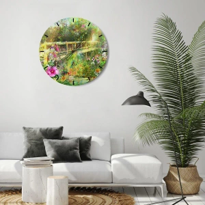 Väggklocka - Klocka på glas - Vårsuckarnas bro - 40x40 cm
