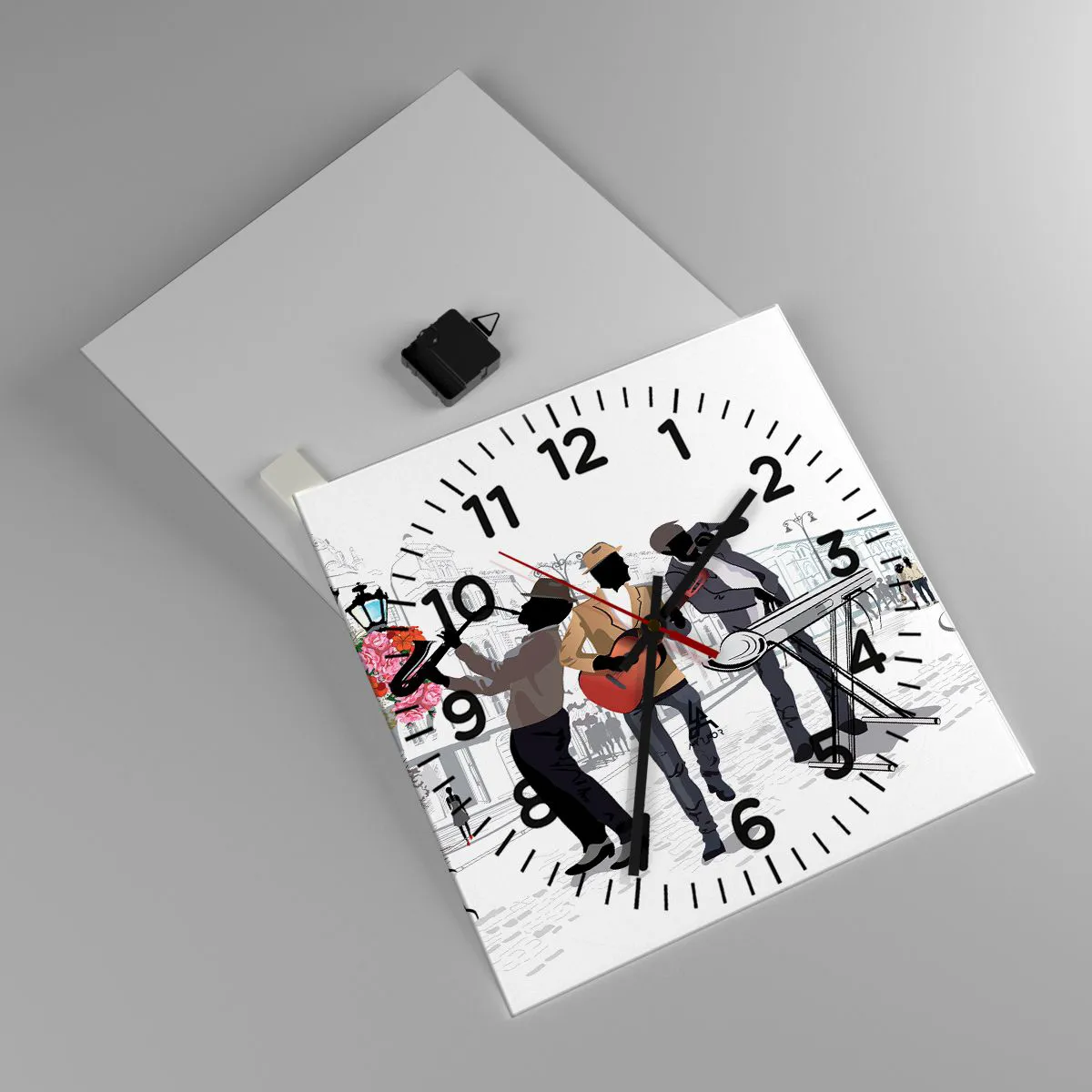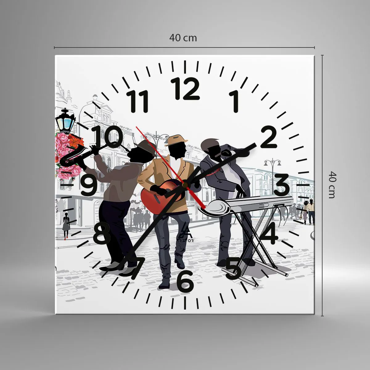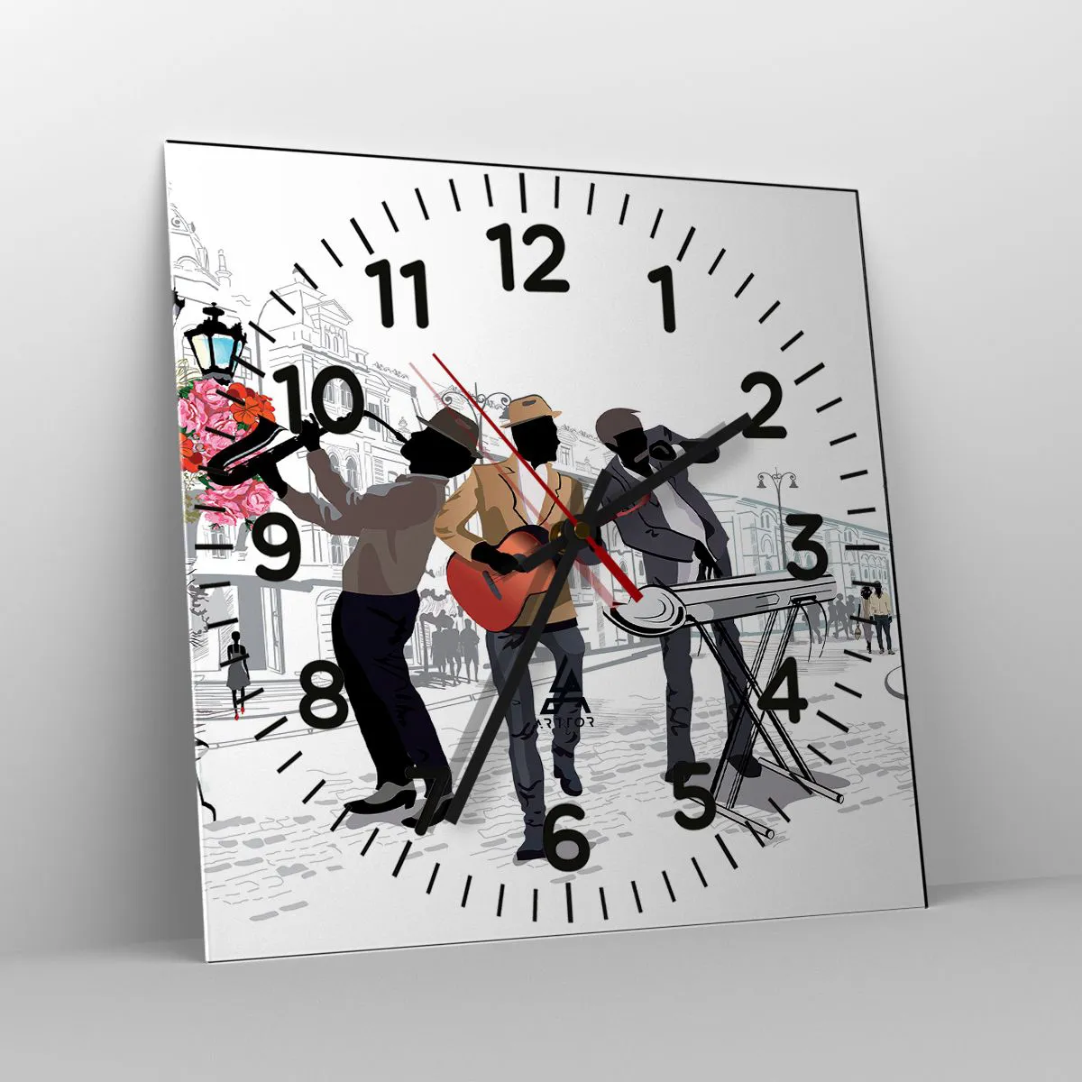 Väggklocka - Klocka på glas - Gatumusik - 40x40 cm