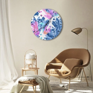 Väggklocka - Klocka på glas - Fjädrar i vitt och blått - 40x40 cm
