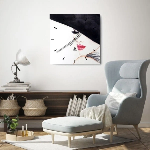 Väggklocka - Klocka på glas - Porträtt av en kvinna med röda läppar - 30x30cm - Elegans och sensualitet - Modern väggdekoration för vardagsrum, kök och sovrum ARTTOR
