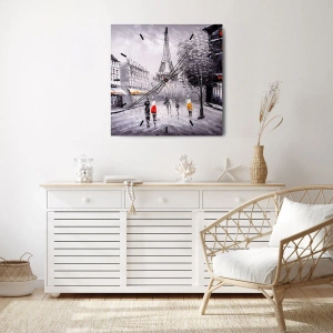 Väggklocka - Klocka på glas - Promenad i Paris - 40x40 cm