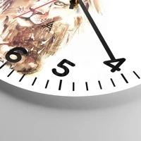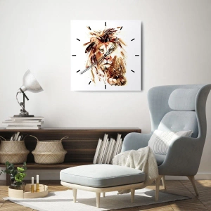 Väggklocka - Klocka på glas - Porträtt av ett lejon i nyanser av brunt i en dynamisk konstnärlig form - 30x30cm - Styrka och värdighet - Modern väggdekoration för vardagsrum, kök och sovrum ARTTOR