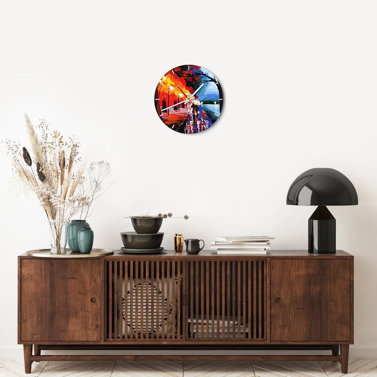 Berika din inredning med en unik accent med denna klocka. **Ett färgstarkt landskap** med ett **par** som promenerar i ljuset av en **lykta** är en dekoration som kommer att betona ditt hems unika karaktär.